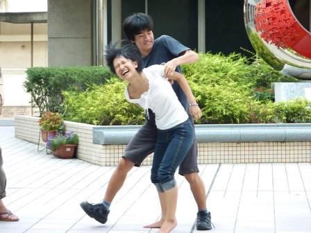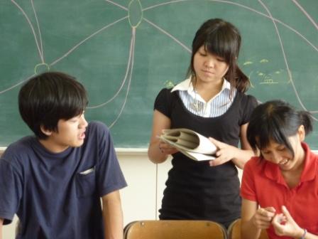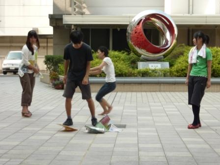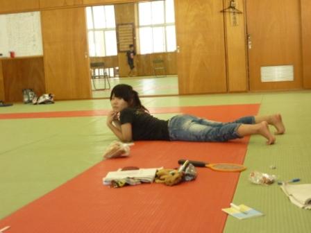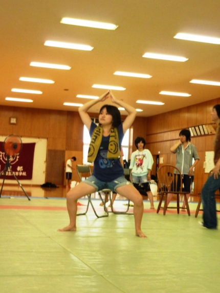 午後からは教室で、机とイス使って簡易セットを作って練習してみました。