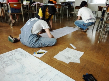 教室では広報さんがせっせかのぼりと看板(?)制作を頑張っていたよ!